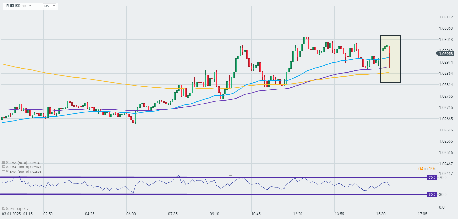 Para EURUSD nieznacznie traci po opublikowaniu danych ISM PMI dla przemysłu. Lepsze sentymenty w przemyśle oraz wyższy wskaźnik cenowy teoretycznie mogą tworzyć podłoże pod bardziej zachowawcze stanowisko FED względem stóp procentowych stąd reakcja spadkowa na parze. Co jednak istotne skala tego ruchu w chwili obecnej jest niewielka.