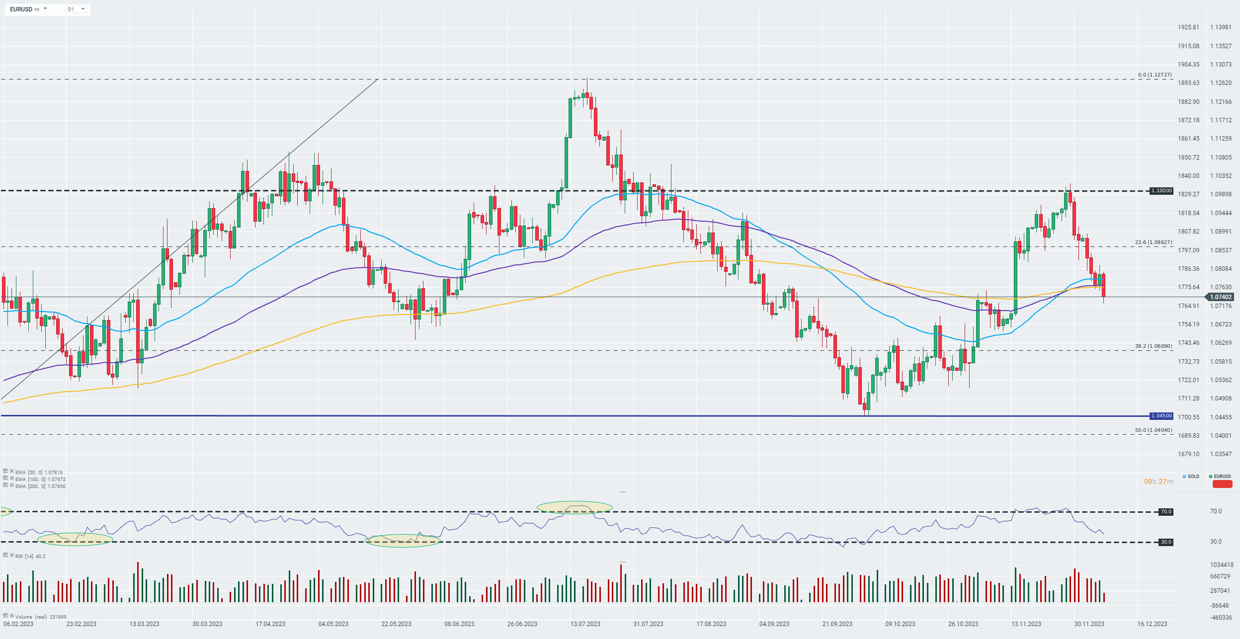 Para EURUSD mocno traci po odczycie danych NFP. Kontrakty terminowe na krótkoterminowe stopy procentowe w USA spadają po danych o zatrudnieniu, ponieważ inwestorzy zmniejszają zakłady na obniżki stóp procentowych Fed w 2024 r.