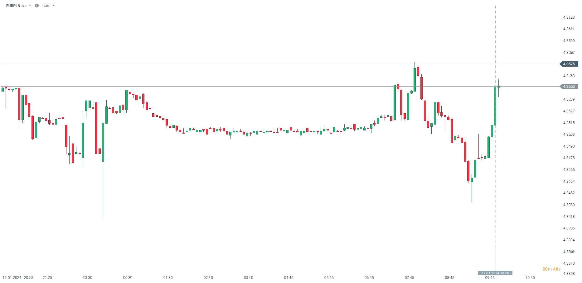 Złoty niwelował zysk od ok. 09:30, ale zaczął tracić mocniej wraz z publikacją słabych danych. Źródło: xStation5