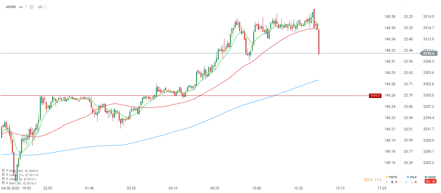Wyraźnie negatywna reakcja na kontraktach na Wall Street. Źródło: xStation5