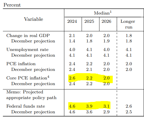 - Fed podnosi również projekcje dla PKB, co wskazuje na oczekiwanie mocnej gospodarce, co teoretycznie może iść w parze z wyższą presją inflacyjną. Tej jednak nie ma w prognozach