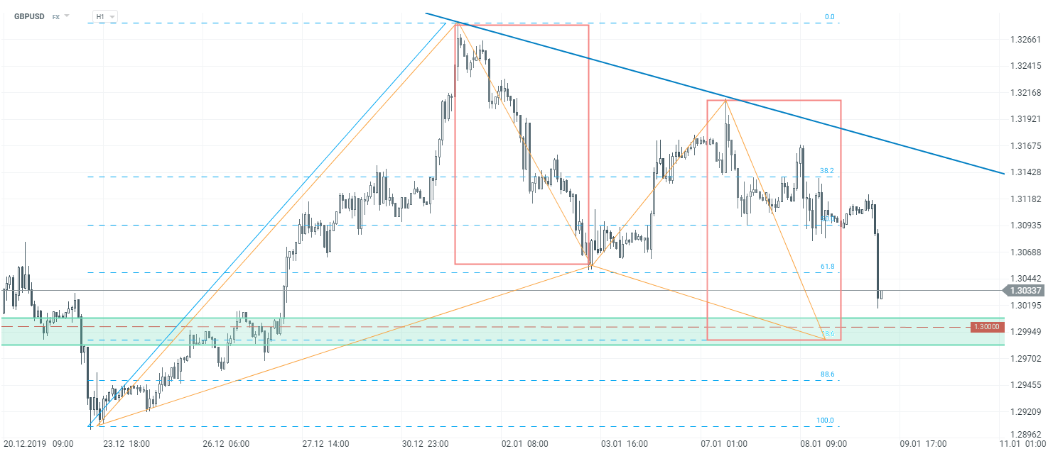 GBPUSD mocno traci po gołebim wystąpieniu prezesa BoE. Kurs zbliża się do wsparcia przy okrągłym poziomie 1,30 USD. Zródło: xStation