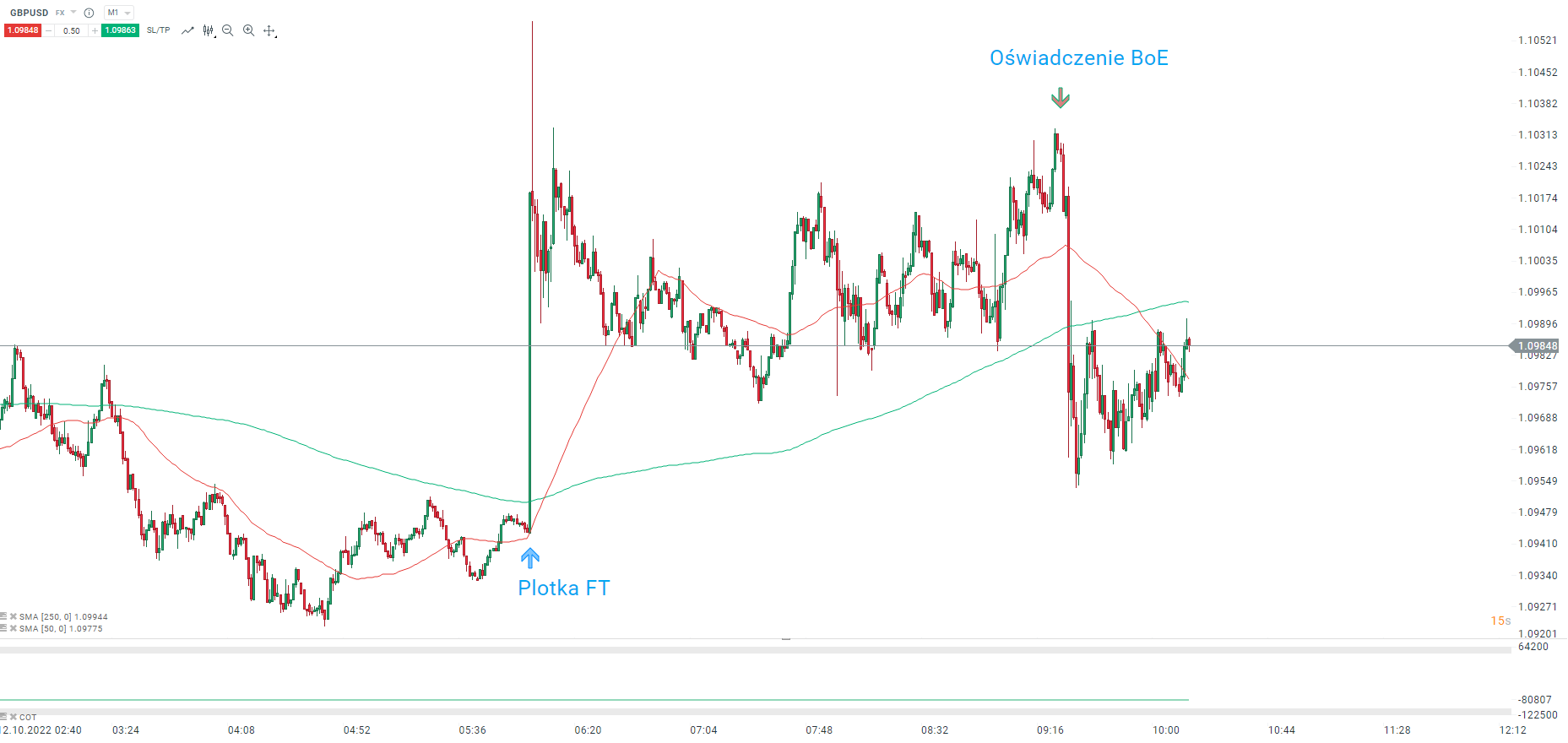 BoE informuje, że awaryjny program skupu ma skończyć się zgodnie z planem w piątek. Wcześniej Financial Times donosił, że BoE rozmawiał z bankami, że program ma być przedłużony. Funt mocno zredukował poranne wzrosty po tym oświadczeniu.