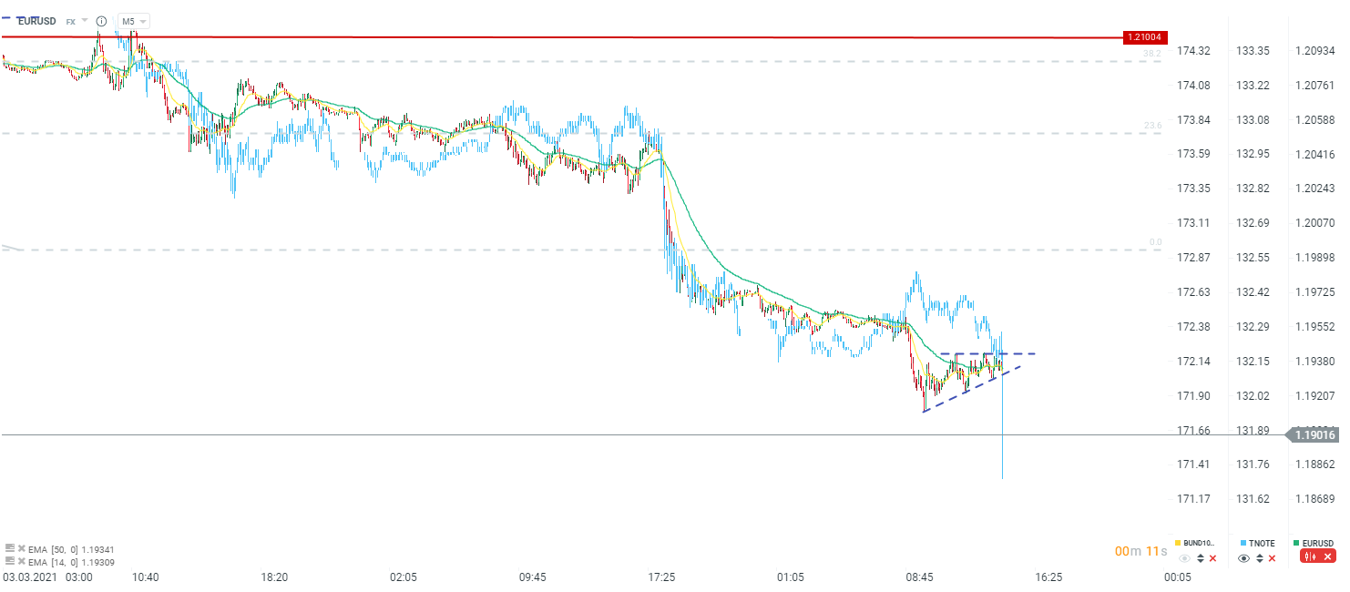 EURUSD poniżej poziomu 1,1900 wobec świetnego odczytu NFP. Jednak dalszy rajd oczekiwań inflacyjnych? Źródło: xStation5