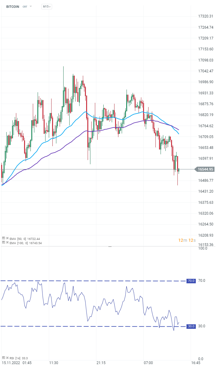 Po komunikacie z giełdy Genesis Bitcoin odnotował niewielkie straty. Źródło: xStation 5