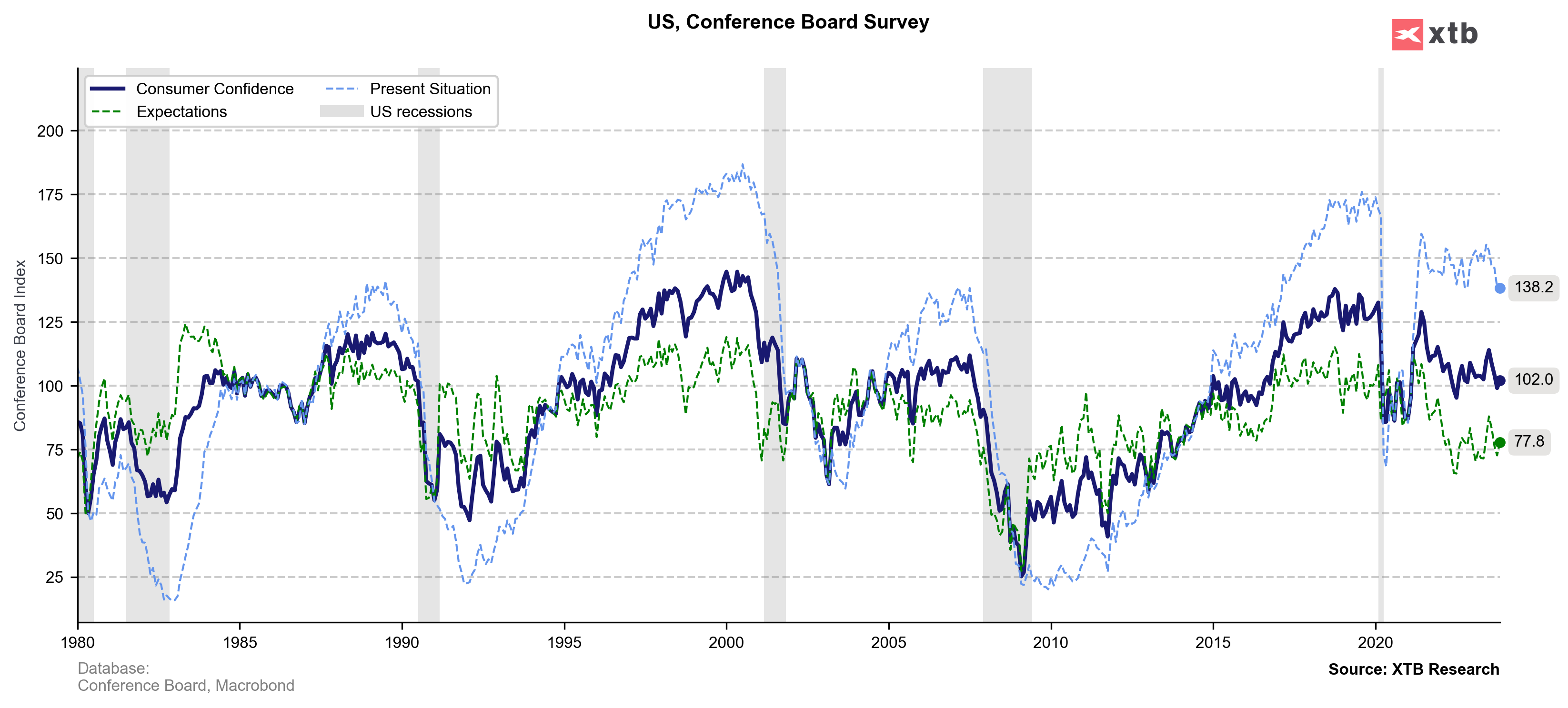 - Indeks zaufania konsumentów Conference Board odczyt rzeczywisty 102 (prognoza 101, poprzednio 102,6)