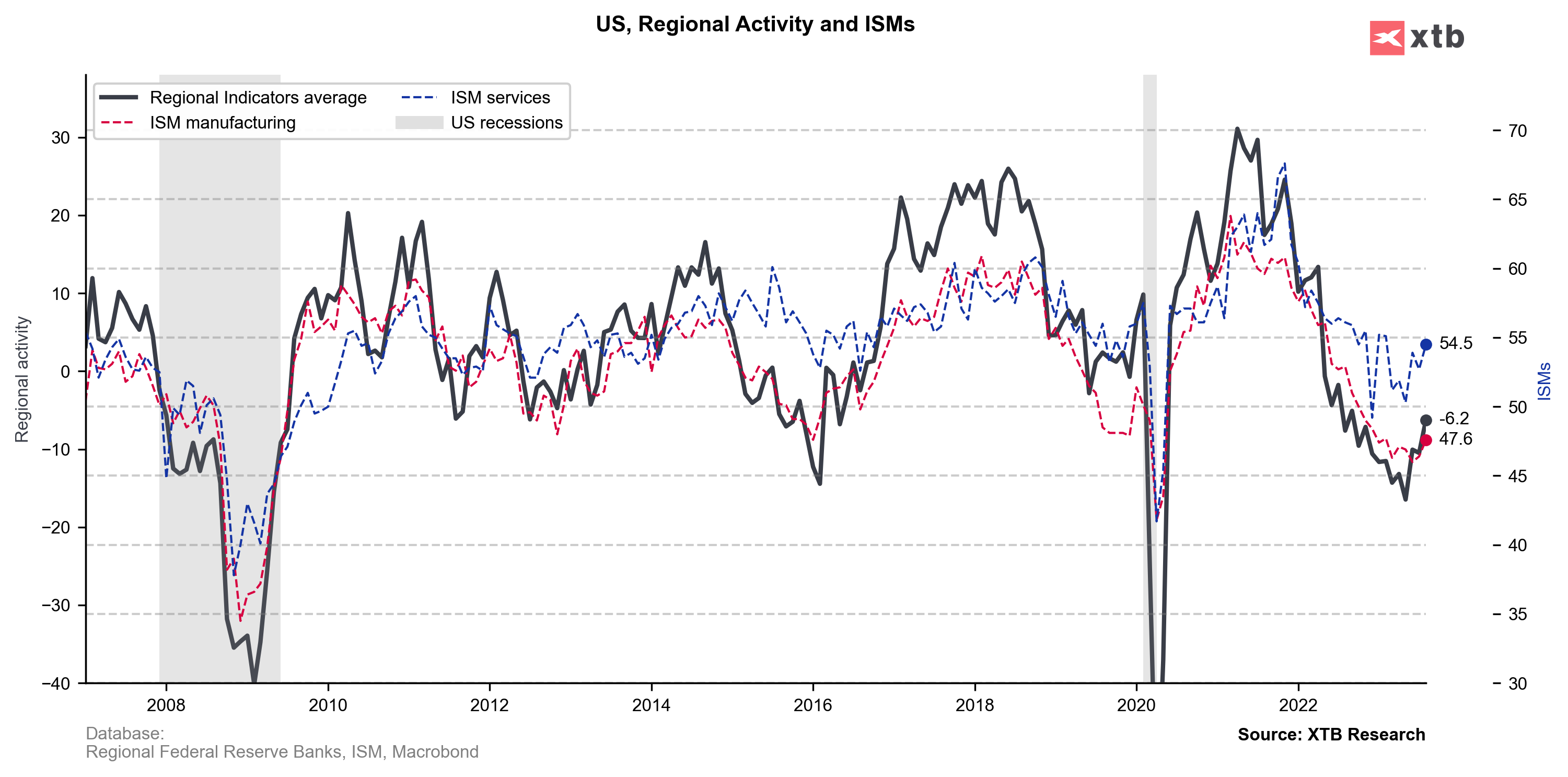 Odbicie indeksu ISM wpisuje się w ostatnie ożywienie indeksów regionalnych, choć oczywiście warto zauważyć, że PMI zaliczył wyraźne osłabienie.