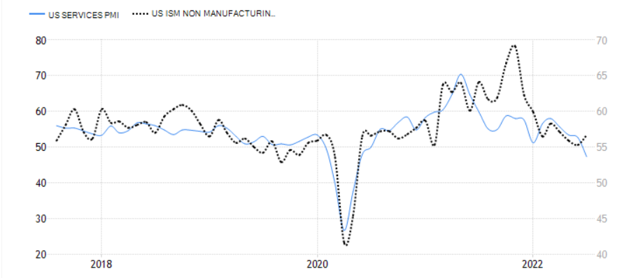 Odczyt za lipiec: 56,7 (przy oczekiwaniu: 53,5 oraz przy poprzednim odczycie: 55,3)