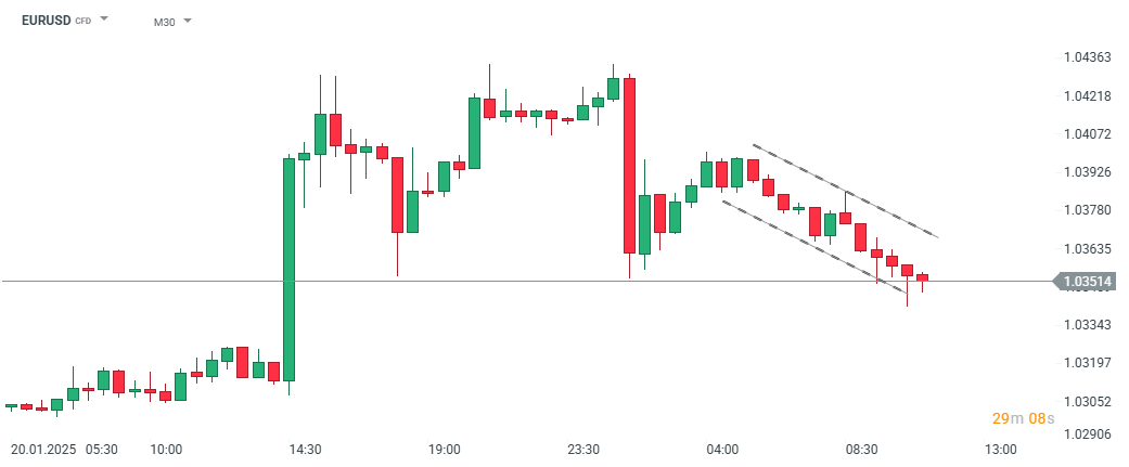 Choć indeks bieżących warunków w niemieckiej gospodarce zanotował niespodziewany wzrost, tak w przypadku indeksu nastrojów mamy do czynienia z odczytem znacznie niższym niż przewidywano, wynoszącym 10,3. Taki odczyt wskazuje na wzmacniające się obawy odnośnie perspektyw niemieckiej gospodarki na początku obecnego roku. W efekcie widzimy kontynuację lekkiego osłabiania euro w porównaniu do dolara.