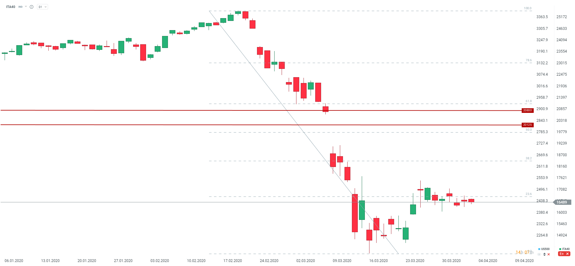 FTSE MIB traci dzisiejszego dnia, ale nie widać reakcji na dane. Źródło: xStation5