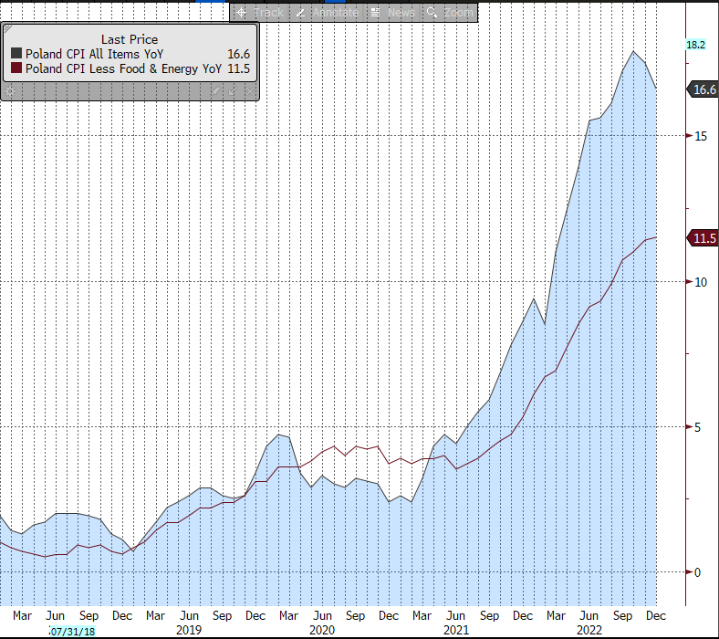 Inflacja bazowa za grudzień: 11,5% r/r (oczekiwano: 11,6% r/r; poprzednio: 11,4% r/r)