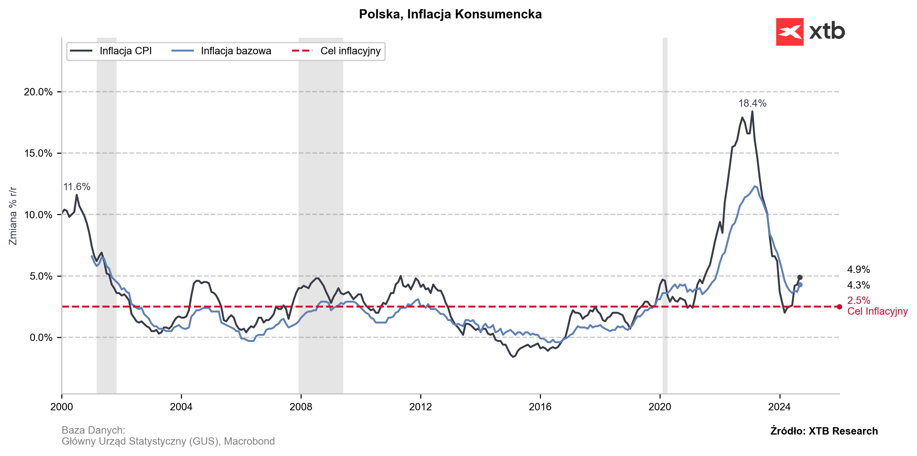 Inflacja bazowa w Polsce za wrzesień wyniosła 4,3% r/r wobec oczekiwanych 4,3% r/r oraz wcześniejszego odczytu na poziomie 3,7% r/r. W ujęciu miesięcznym inflacja wzrosła o 0,3% m/m wobec oczekiwanych 0,4% m/m oraz wcześniejszego odczytu na poziomie 0,3% m/m. Polski złoty oraz para walutowa USDPLN nie odnotowały skoku zmienności bezpośrednio po odczycie danych.