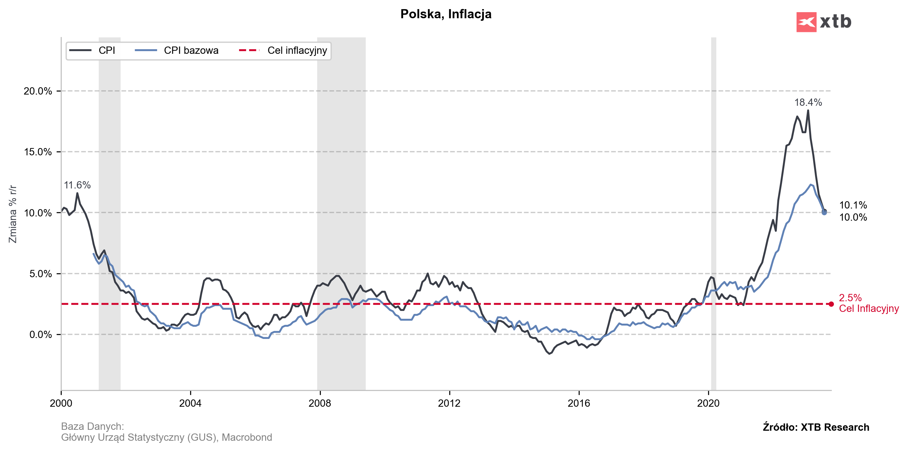 - Inflacja bez cen energii i żywności w Polsce. Obecnie: 10% Oczekiwana: 10% Poprzednio: 10,6%7