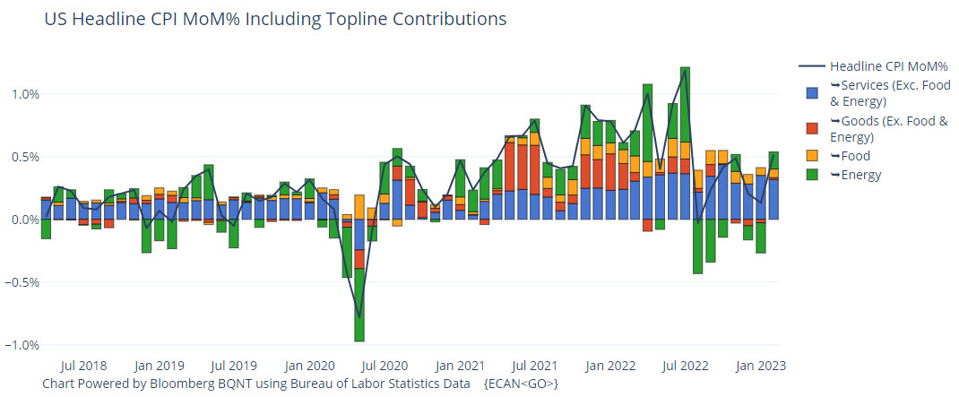 Rynki akcji nieznacznie straciły po odczycie raportu CPI. Jeśli chodzi o szczegóły dzisiejszego odczytu, to możemy zauważyć, że zaskoczyły ceny energii, które po utrzymującym się trendzie spadkowym wznowiły ruch w górę. Ceny usług również mocno w górę.