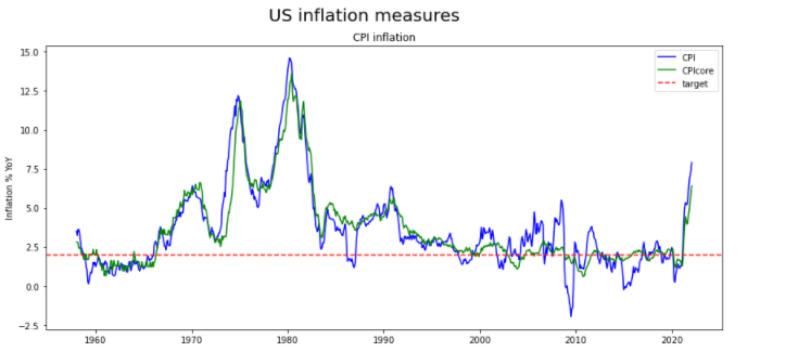 Inflacja kontynuuje wzrosty, przypominając wzrosty z lat 70, ale jednocześnie wypada zgodnie z oczekiwaniami. Źródło: Macrobond, XTB