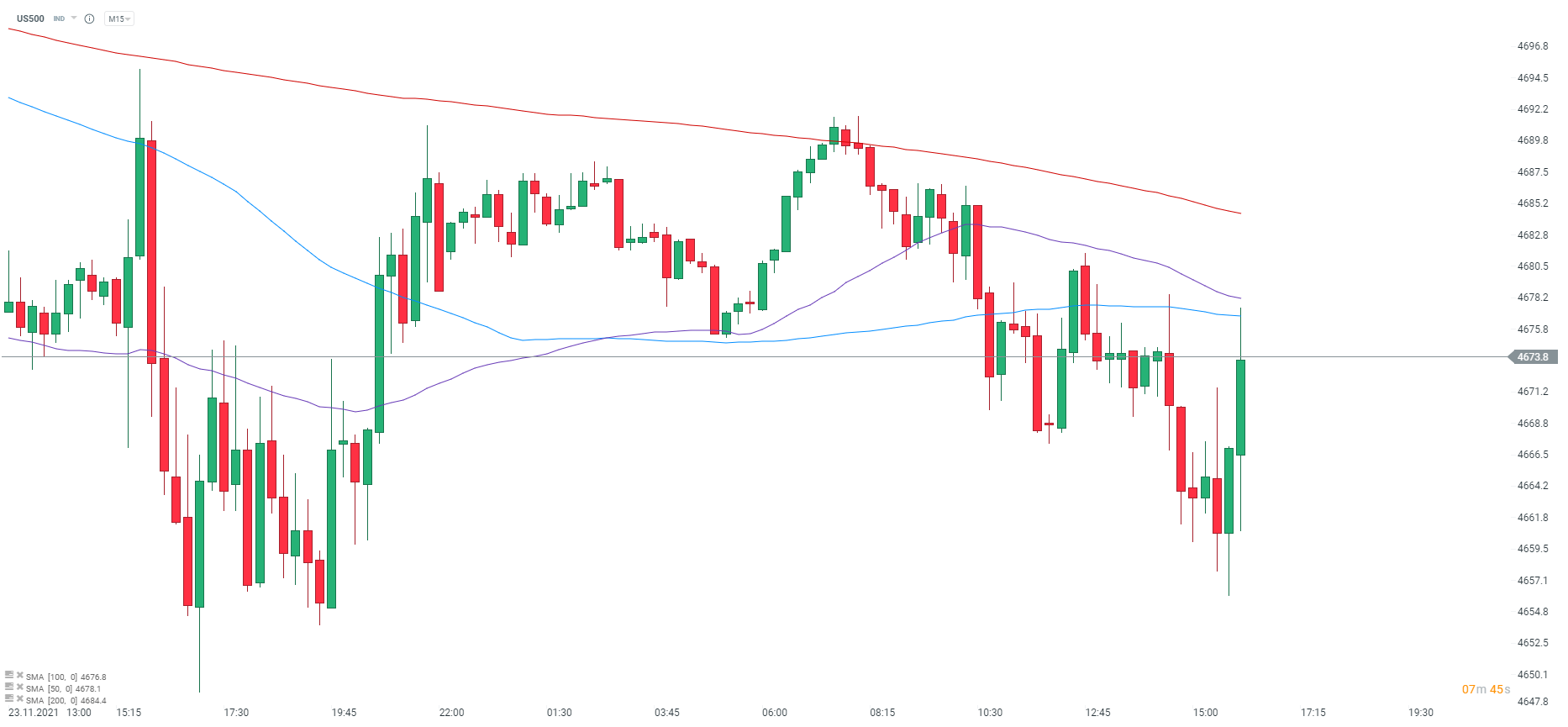 US500 próbuje odbijać po otwarciu rynku kasowego. Niemniej może to być też efekt odbicia w Europie wobec sprzeciwu wprowadzenia lockdownu w największej gospodarce w EMU. Źródło: xStation5