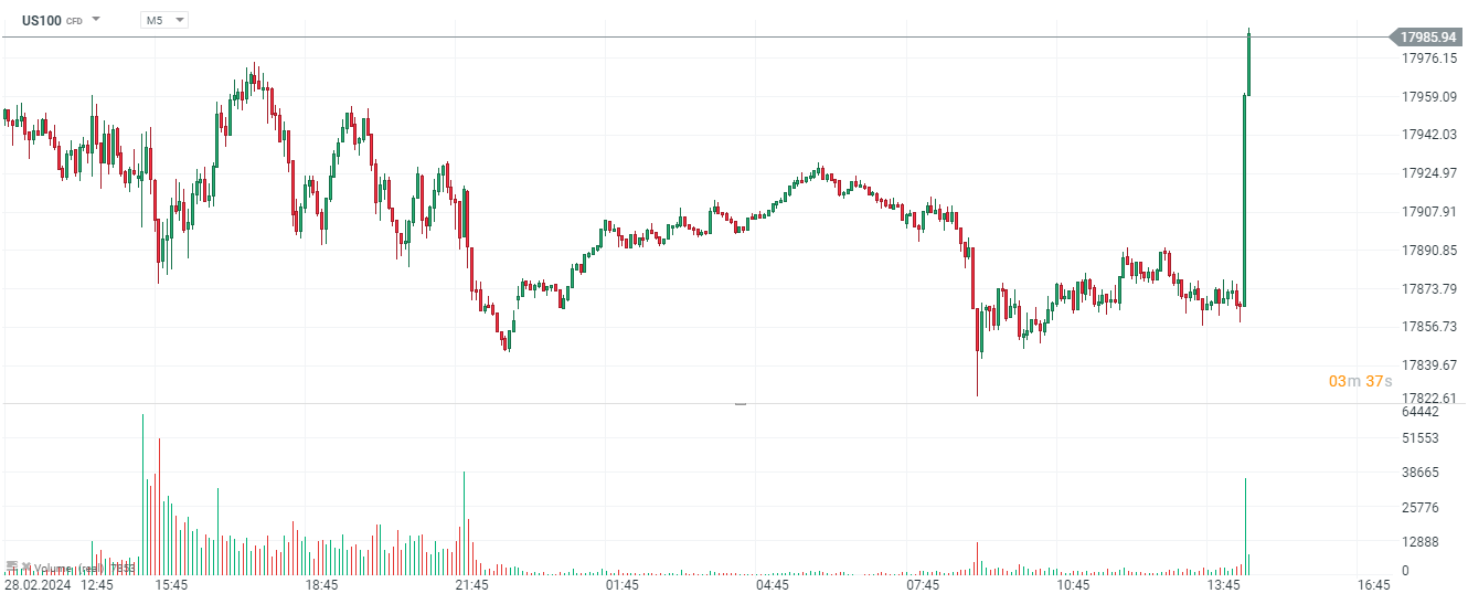 Odczyt danych z USA złagodził obawy rynku o potencjalnie wyższą presję w PCE, po ostatnim nieco wyższym od prognoz odczycie CPI, gdzie spory udział miała inflacja cen usług. W efekcie widzimy falę wzrostów na Wall Street, które przekonuje się, że dane PCE nie stanowią dla Rezerwy Federalnej 'czerwonej lampki', co więcej; także wnioski o zasiłek wypadły nieco wyżej, od prognoz (choć nadal są bardzo niskie).