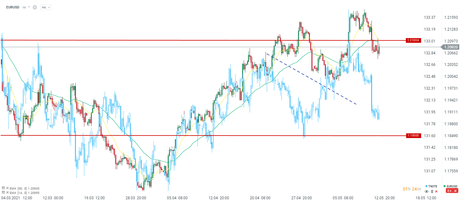 Co ciekawe dolar traci po publikacji. Być może po wczorajszej inflacji CPI oczekiwano większego zaskoczenia, choć skala wzrostu cen jest wciąż zaskakująca, przede wszystkim inflacji bazowej, która wyklucza ceny energii. Poziom 1,2100 to wciąż kluczowy poziom oporu. Źródło: xStation5