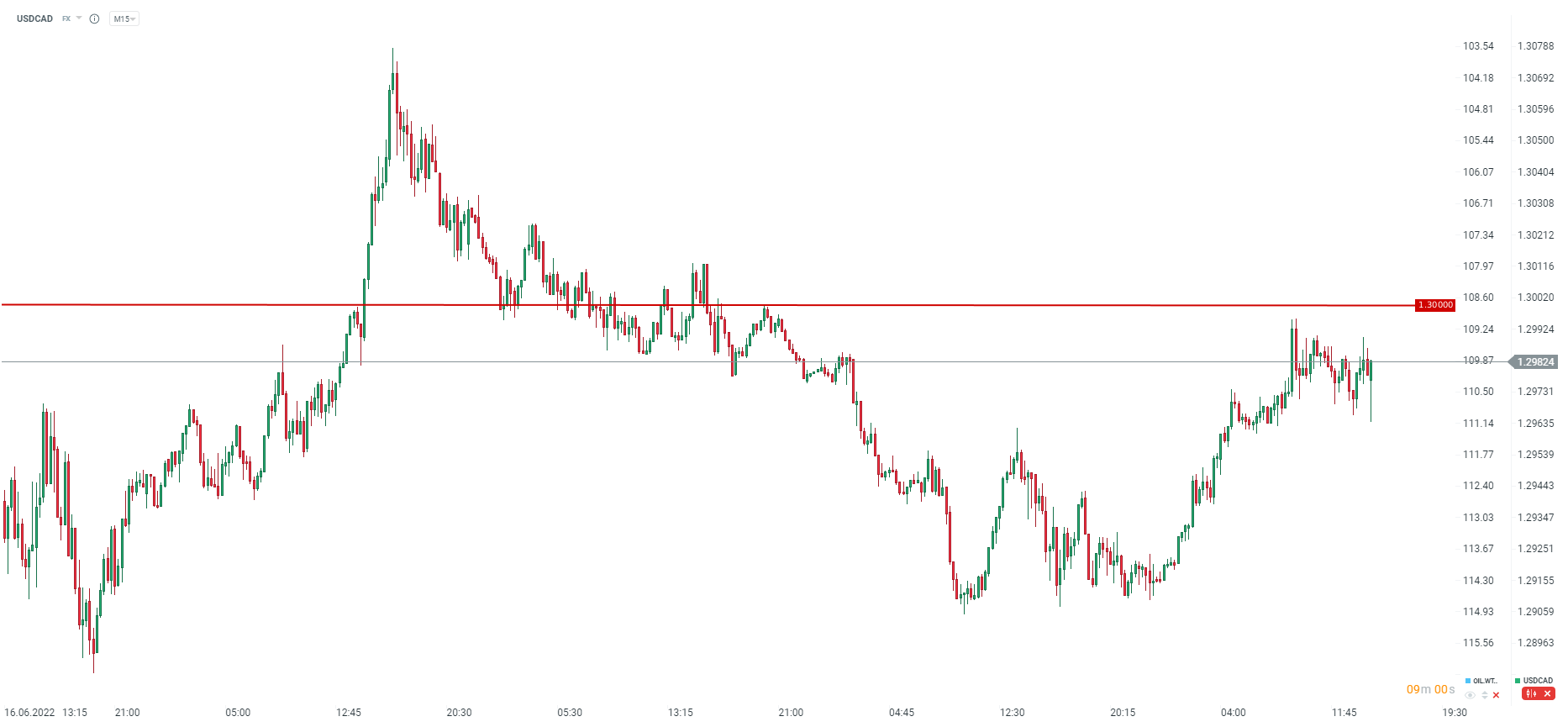 Pomimo mocnego odczytu inflacyjnego CAD traci w stosunku do dolara amerykańskiego. Wzrost na USDCAD wynosi już dzisiaj ponad 0,5%. Słabość dla CADa przynosi również dalszy spadek cen ropy naftowej. Źródło: xStation5