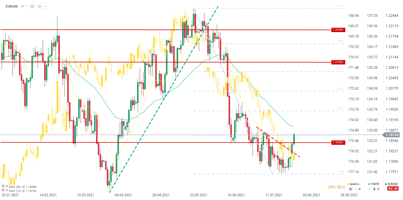 EURUSD testuje zniesienie 23.6. Źródło: xStation5