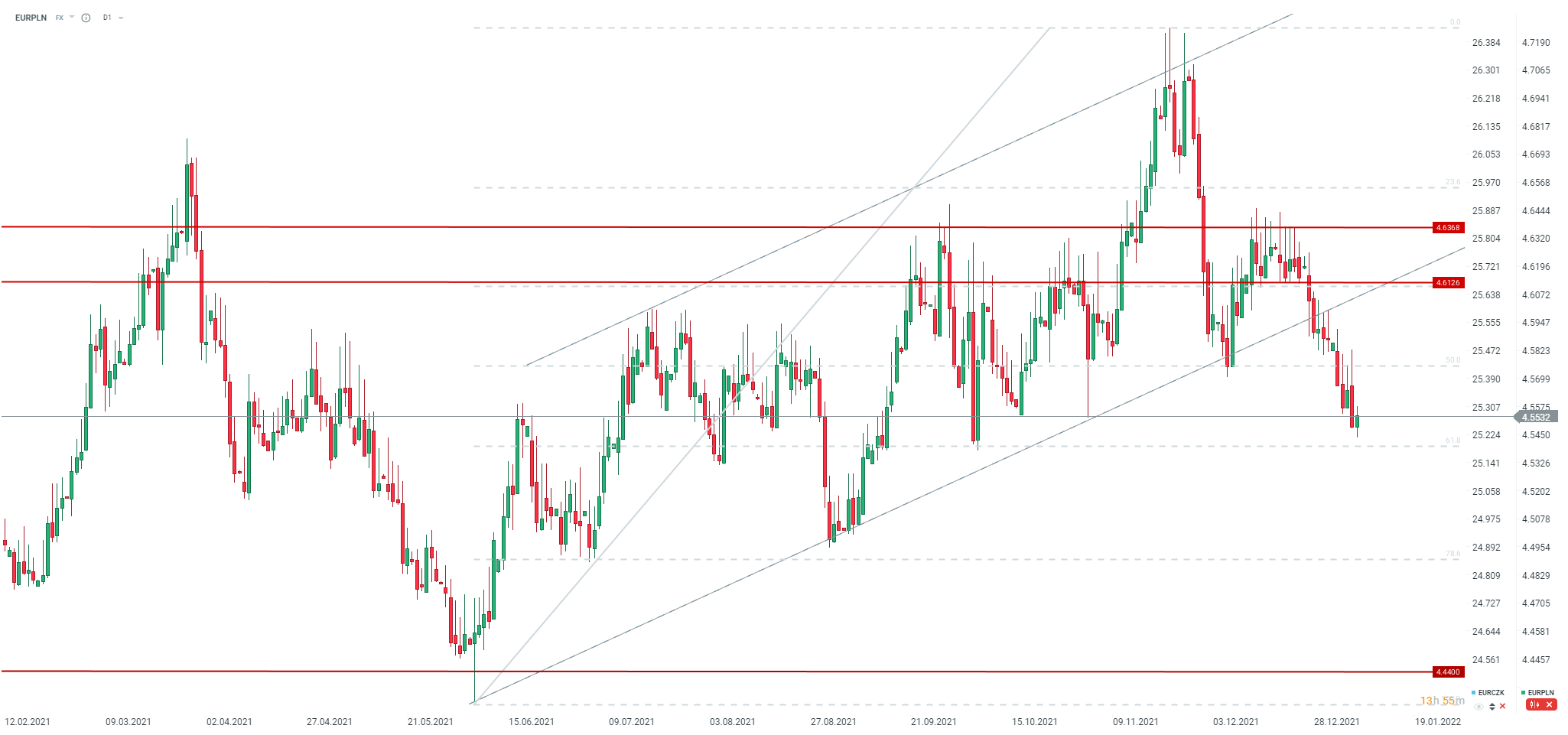 EURPLN pozostaje powyżej ważnego wsparcia. Źródło: xStation5