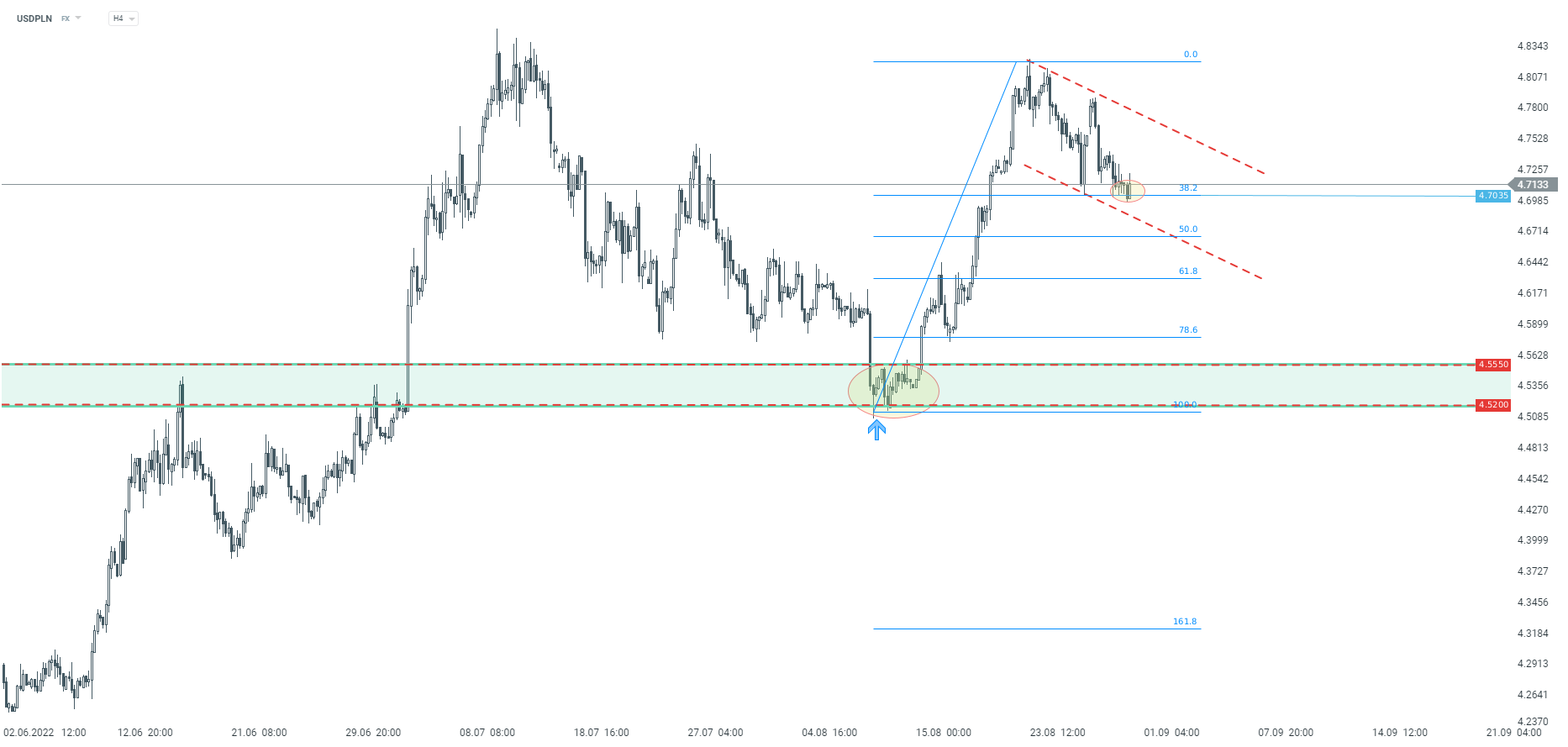 USDPLN interwał H4. Źródło: xStation5