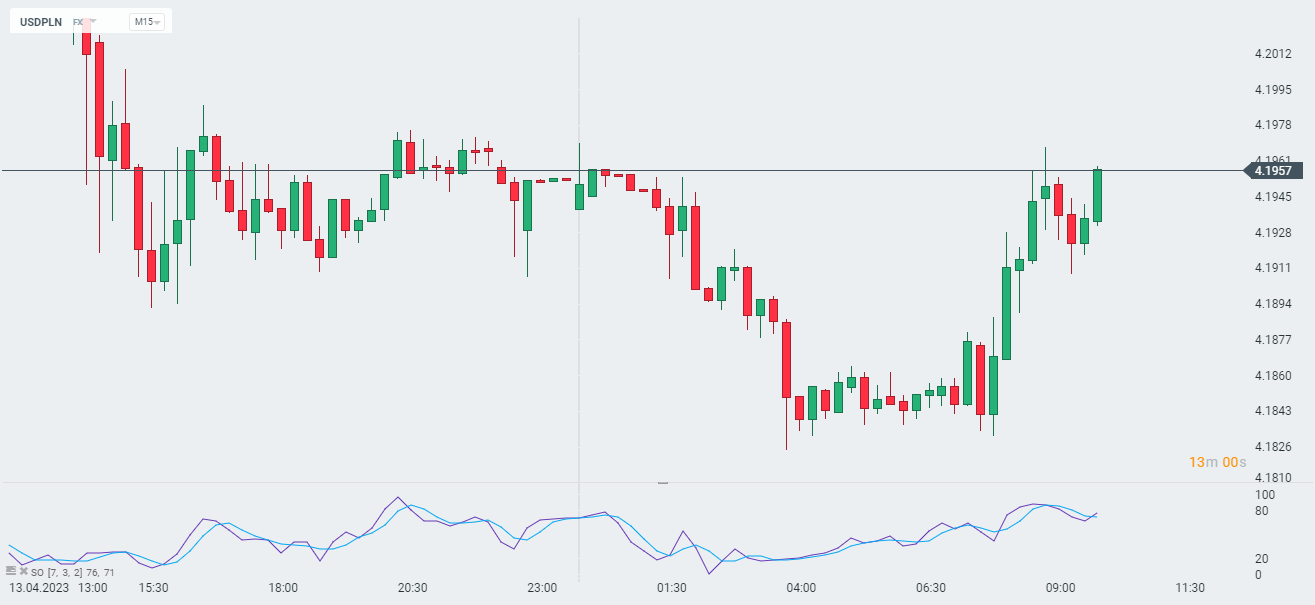 Para USDPLN zareagowała nieznacznymi zwyżkami bezpośrednio po odczycie zrewidowanych danych inflacyjnych w Polsce. Źródło: xStation 5