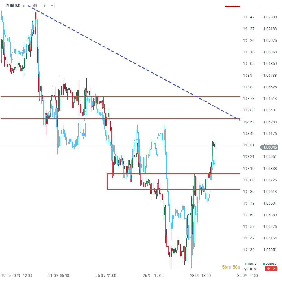 Niższa inflacja od oczekiwań, która dodatkowo zmniejsza szanse na kolejną podwyżkę ze strony EBC. EURUSD jednak traci w tym momencie i spada z okolic poziomów powyżej 1,0600.
