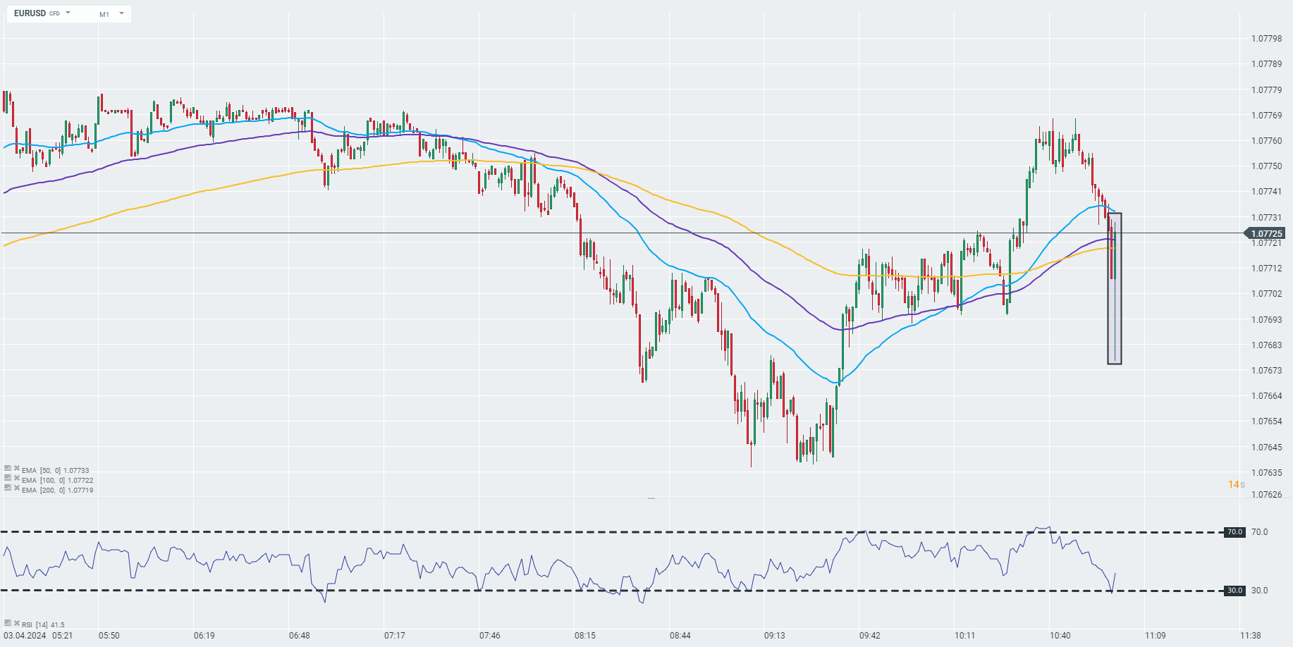 Para EURUSD nieznacznie straciła na chwilę po odczycie danych.