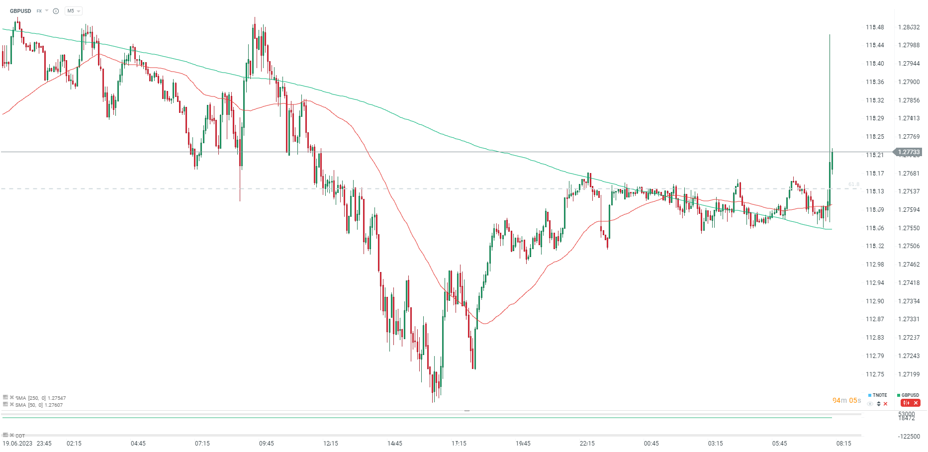 W odpowiedzi obserwujemy mocne podejście GBPUSD pod poziom 1,2800, choć ruch ten dosyć szybko został zneutralizowany.
