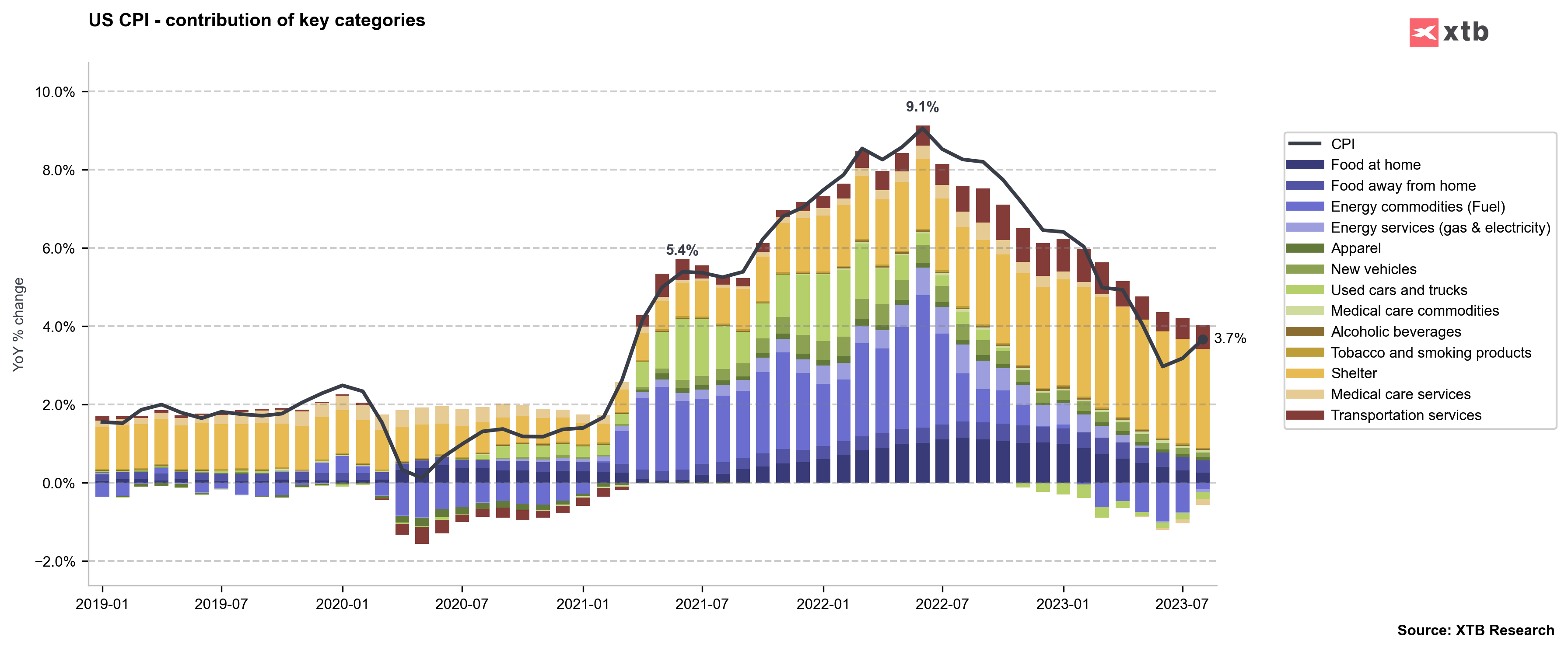 Kontrybucje w odczycie inflacji z USA za sierpień. Źródło: XTB Research
