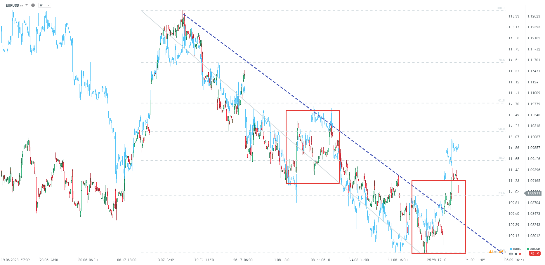 Inflacja we Francji wypada znacznie wyżej od oczekiwań, nie wspominając o sporym odbiciu w porównaniu do lipca. W Niemczech mieliśmy mniejszy spadek od oczekwiań, co daje nam dzisiaj podstawy do braku spadku inflacji w całej strefie euro. To może przypieczętować podwyżkę w strefie euro, choć jednocześnie decydenci będą mieli na uwadze potencjalnie wstrzymanie z podwyżkami ze strony Fed czy również ogromne spowolnienie gospodarcze w Niemczech czy Francji.