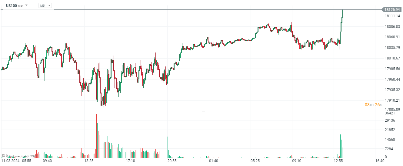 Wall Street wycofuje część gołębich zakładów na obniżki stóp Fed, po publikacji, ale wciąż uważa czerwiec jako prawdopodobny okres luzowania polityki. Jednocześnie analitycy OPEC podnieśli prognozę wzrostu gospodarki USA w 2024, do 1,9% wobec 1,6% poprzednio. Rynek zaczyna zastanawiać się, czy styczniowe dane rzeczywiście były noworoczną anomalią, czy inflacja zacznie regularnie zaskakiwać w górę i coraz trudniej będzie ją sprowadzić do celu. Do niższego raportu dołożyły się też niższe ceny samochodów używanych (spadek o 3,4% r/r). Ceny usług z wyłączeniem czynszów wzrosły o 3,9% r/r. Wydaje się, że raport podkreślił, że Fed może zostać 'ostrożny' na dłużej, niż oczekuje rynek. Z drugiej strony skala zaskoczenia nie jest na tyle znacząca, by rynek zaczął wyceniać po danych kompletnie inny scenariusz, niż ten oczekiwany od wielu tygodni, czyli cięcia stóp mniej więcej w połowie roku.
