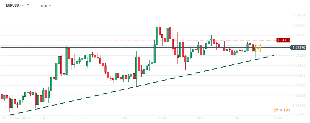 Mimo odczytu inflacji powyżej oczekiwań na parze EURUSD nie widać znacznych ruchów. Euro kontynuuje trend umacniania się w stosunku do dolara, zbliżając się do pierwszego istotnego oporu na poziomie 1,04313.