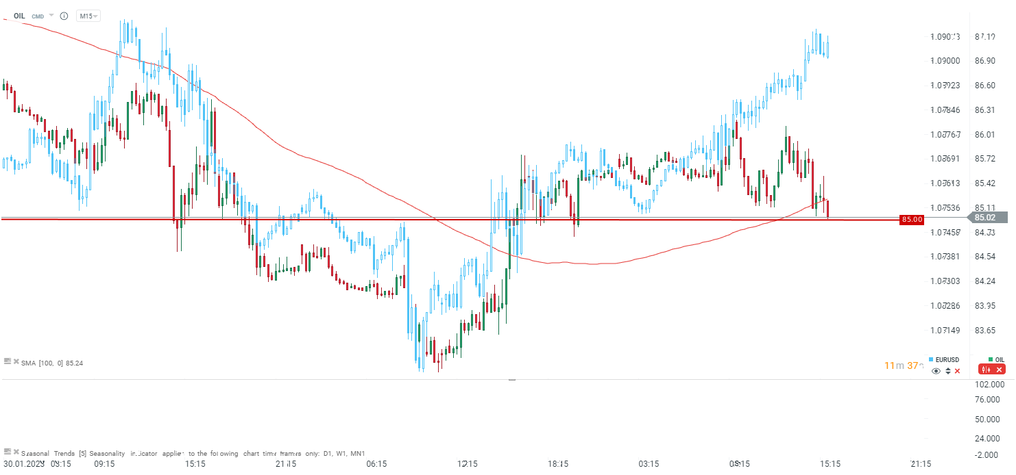 EURUSD pozostawał wysoko przed danymi oraz przed decyzją Fed. Reakcja na dolarze jest zaskakująca, gdyż z jednej strony widać spowolnienie gospodarki, choć z drugiej wciąż mocny rynek pracy. Źródło: xStation5