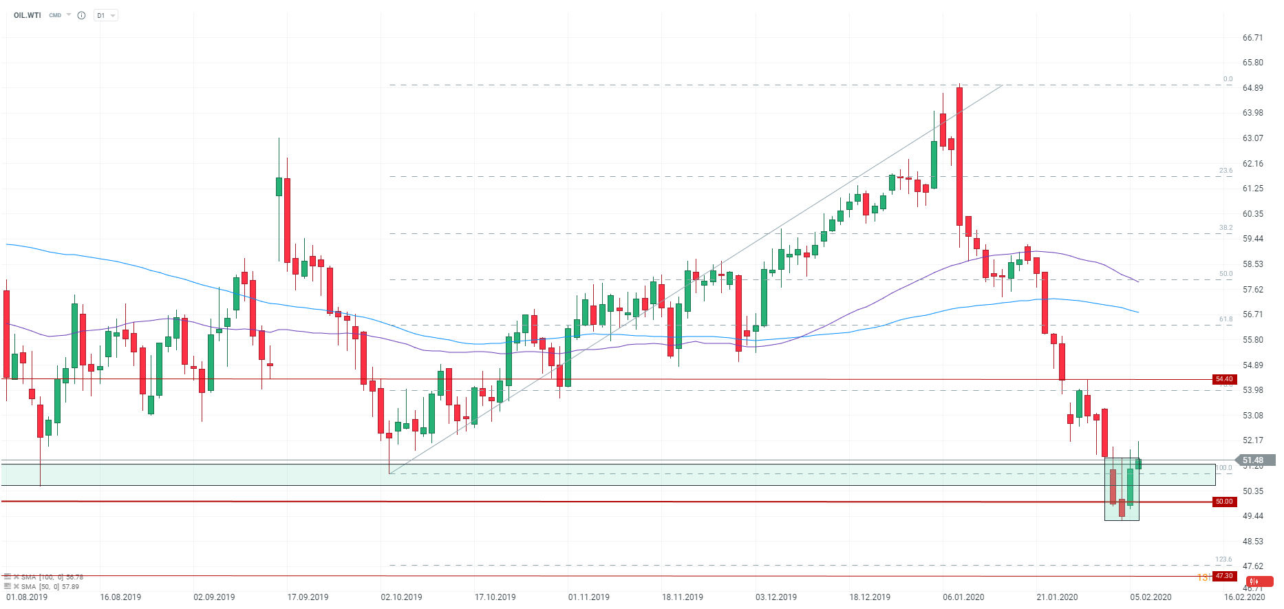 Ropa naftowa odbija dzisiejszego dnia, ale nie w związku z pozytywnymi spekulacjami na temat dodatkowego cięcia przez OPEC. Źródło: xStation5