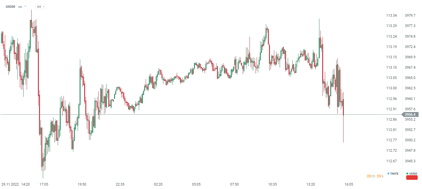 US500 zanurkował po odczycie, choć próbuje odreagować straty. Jednocześnie jednak warto zauwazyć, że w ujęciu dziennym zmienność jest naprawdę bardzo niska. Źródło: xStation5