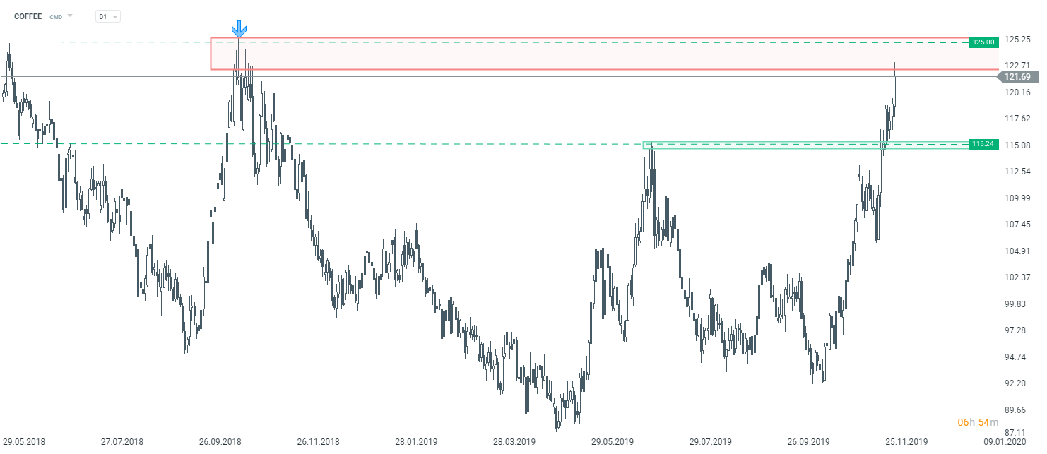 Podczas dzisiejszej sesji możemy obserwować dalsze wzrosty na rynku kawy, tym samym notowania ponownie znalazły się na najwyższych poziomach w tym roku. W poniedziałek cena rośnie ponad 2. Pomimo braku konkretnych fundamentalnych informacji, dzisiejsze wzrosty mogą być spowodowane przez ostatmnie dane z Kostaryki, gdzie eksport kawy w ujęciu rocznym spadło o 30 procent.