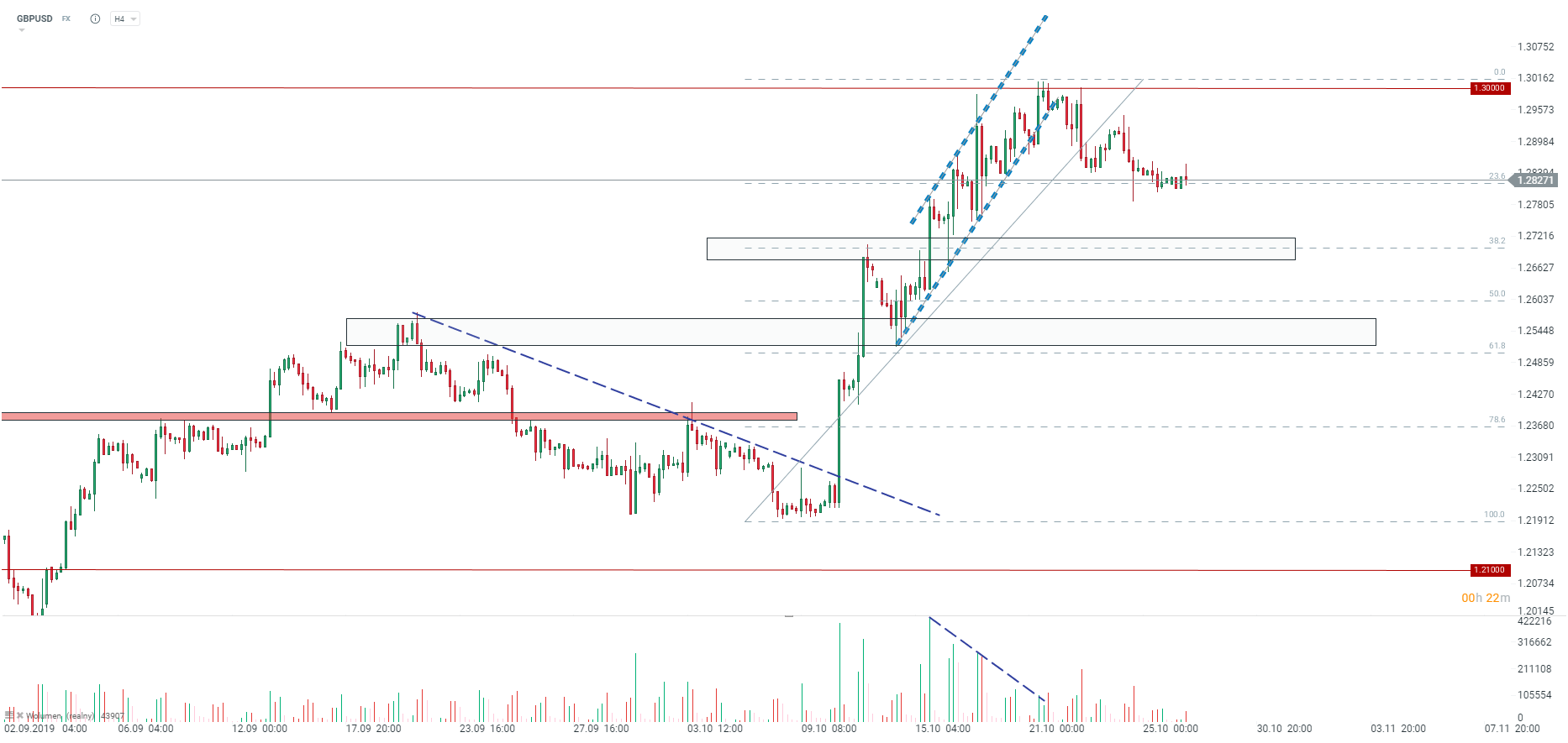 GBPUSD testuje okolice zniesienia 23.6. Źródło: xStation5