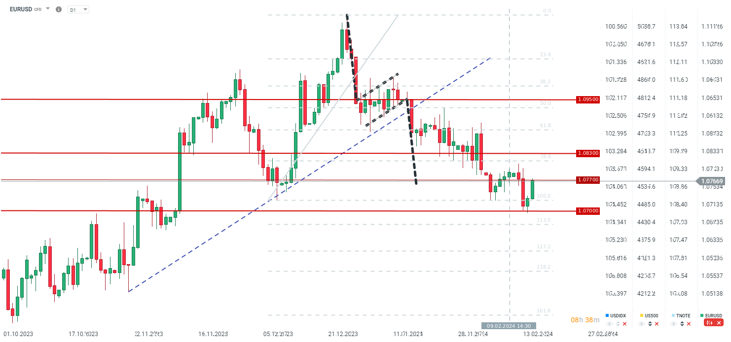 EURUSD kontynuuje silne odbicie po publikacji kolejnych słabych danych z USA. Źródło: xStation5