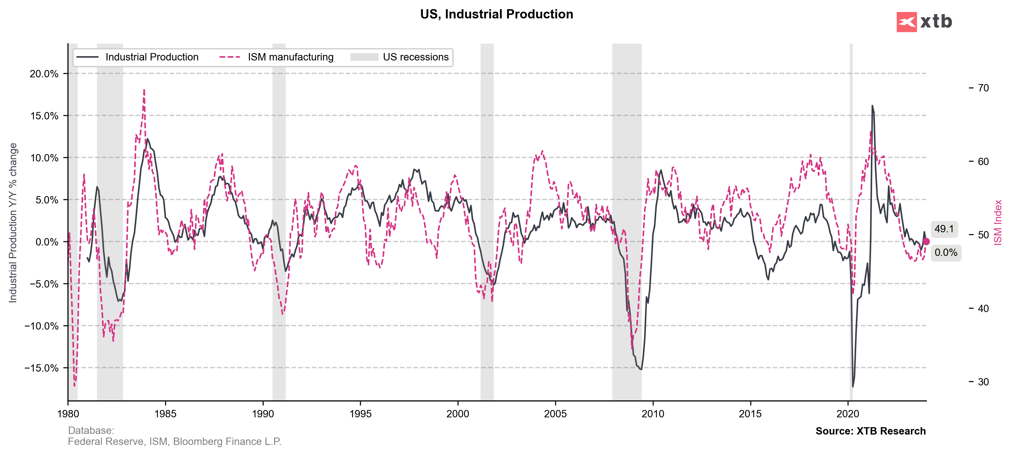 Produkcja w ujęciu rocznym nie zmienia się. Źródło: Bloomberg Finance LP, XTB