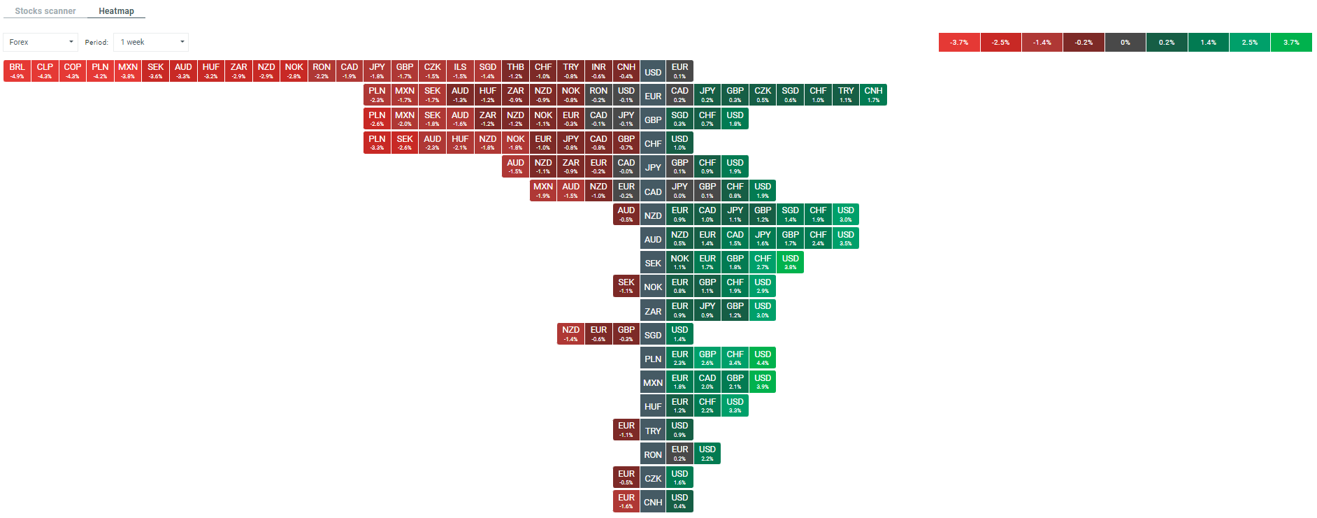 W skali tygodnia USD umocnił się względem PLN o blisko 4,5%.
