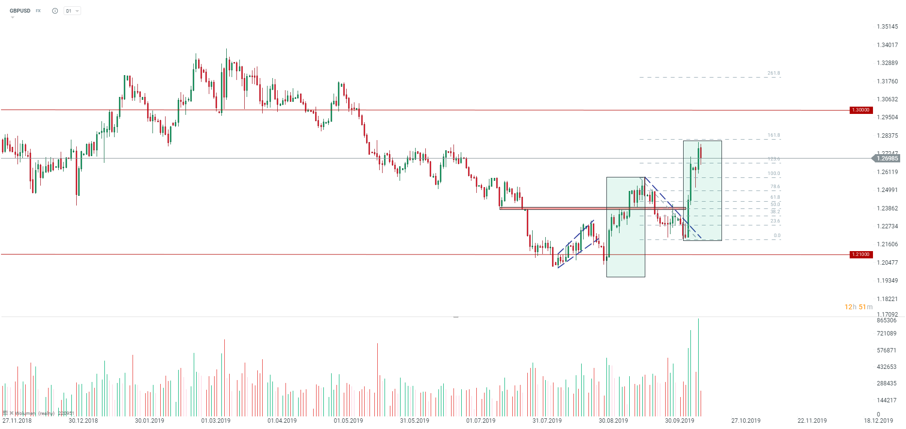 Para GBPUSD cofa się wyraźnie z okolic zasięgu fali wzrostowej. Źródło: xStation5