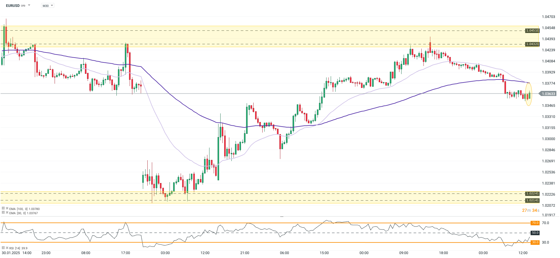 Obok mniej dynamicznego wzrostu kosztów pracy obserwujemy natomiast większy niż oczekiwano przyrost wniosków o zasiłek dla bezrobotnych. 4-tygodniowa średnia nowych wniosków odbiła istotnie po raz pierwszy od połowoy grudnia. EURUSD odbija ok. 0,1% po publikacji danych, co może wiązać się z mniejszymi oczekiwaniami presji inflacyjnej ze strony amerykańskiego rynku pracy, a tym samym mniejszego ciężaru na barkach Fed.
