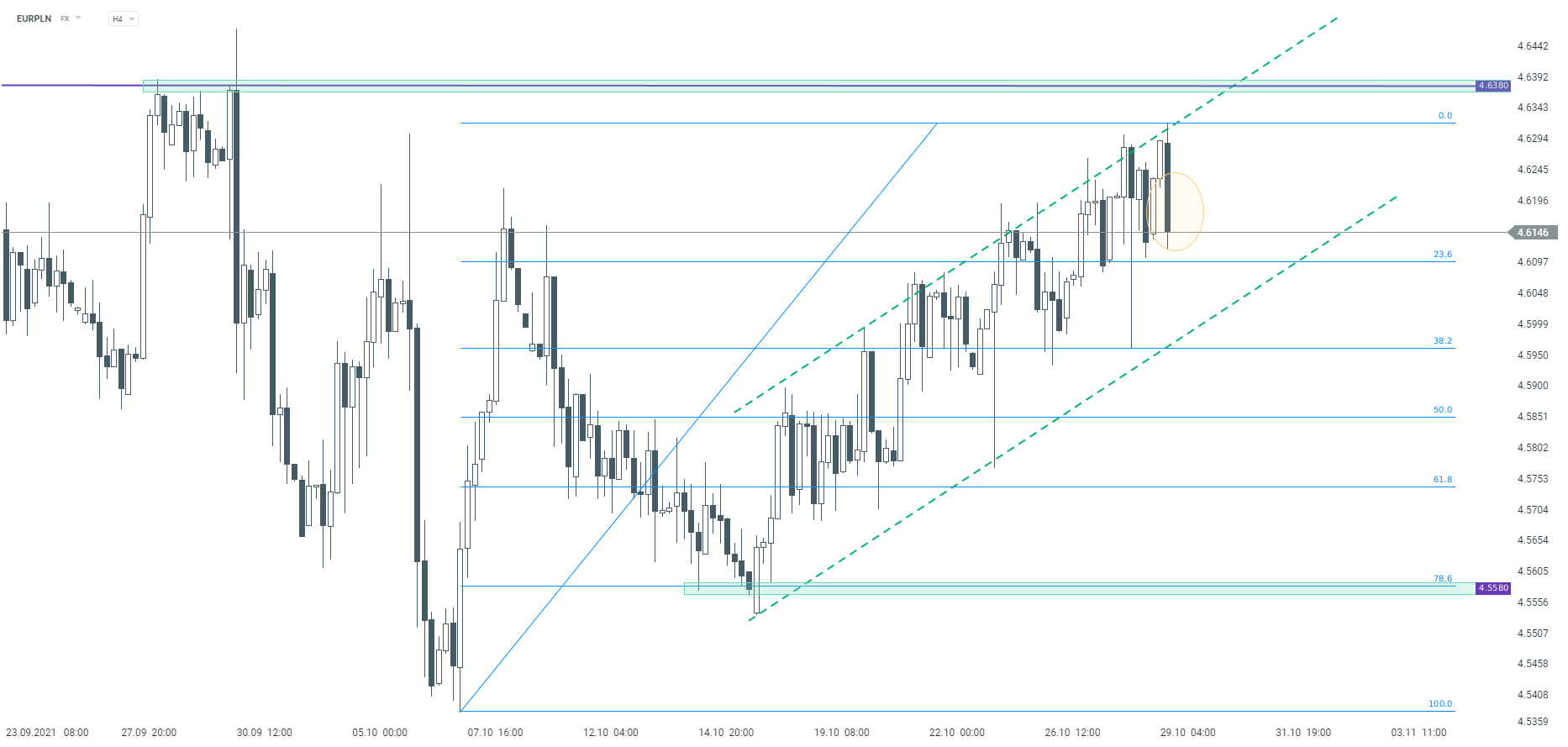 EURPLN interwał H4. Źródło: xStation5