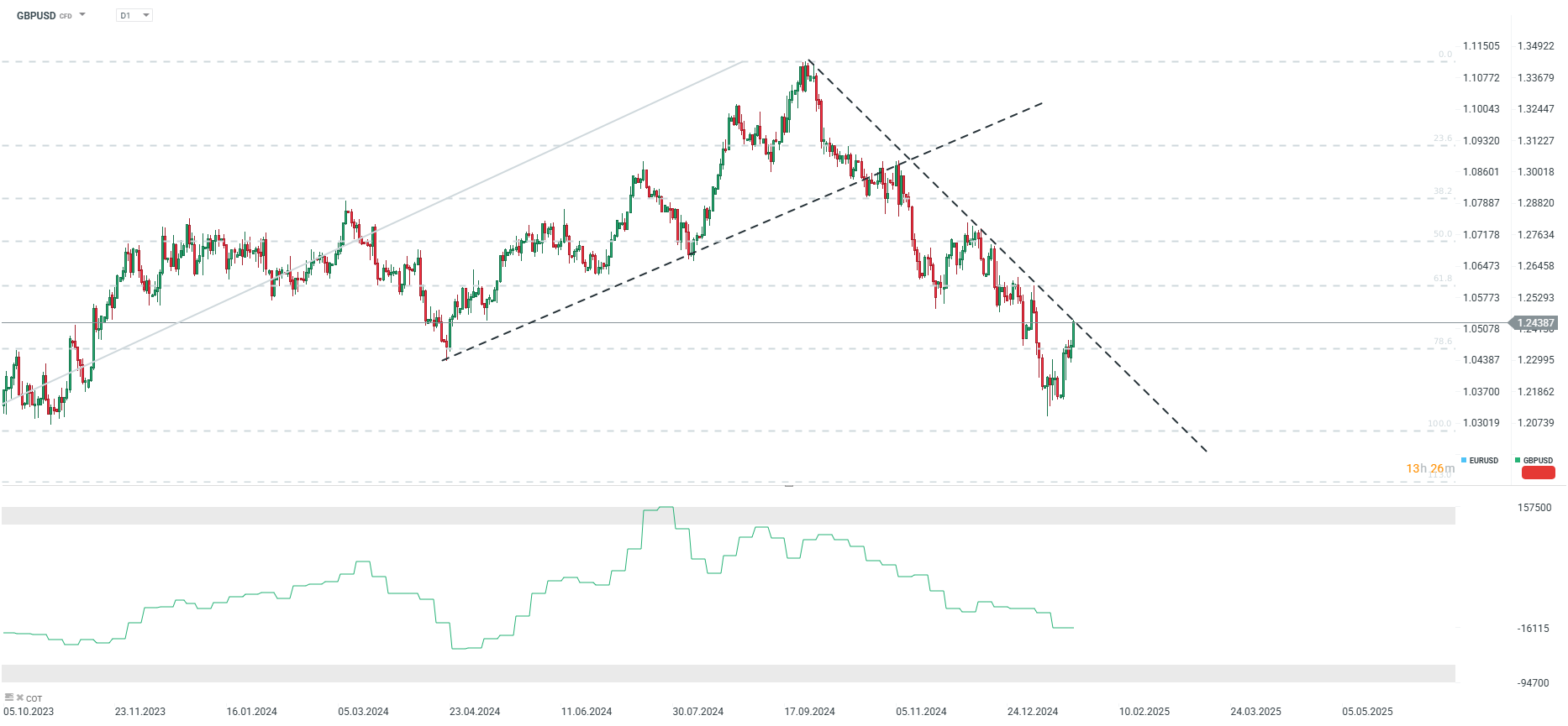 Dobre dane z UK, pomimo ostatnich niepewności dotyczących budżetu i wzrostu rentowności. GBPUSD kontynuuje odbicie, choć po części wzrost jest motywowany słabym dolarem. GBPUSD testuje spadkową linię trendu