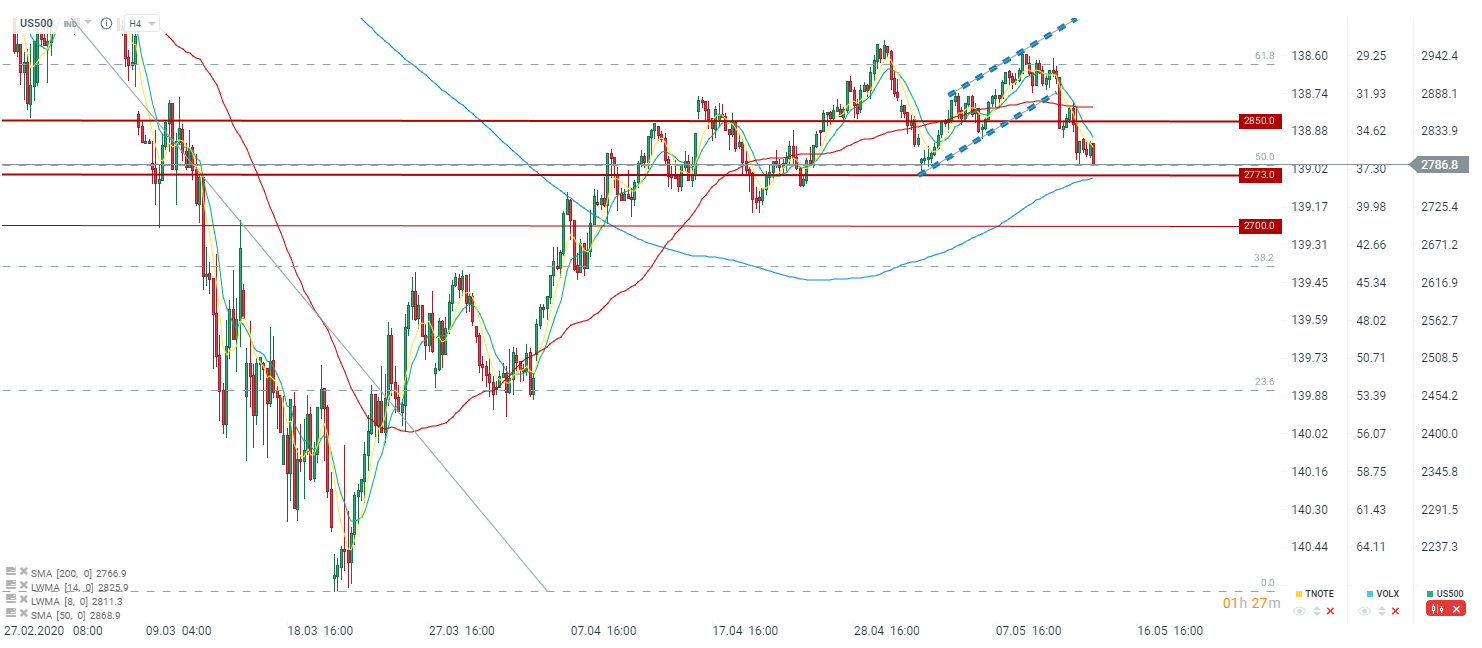 S&P 500 przystępuje do testowania kluczowej strefy wsparcia konsolidacji z ostatnich tygodni. Źródło: xStation5