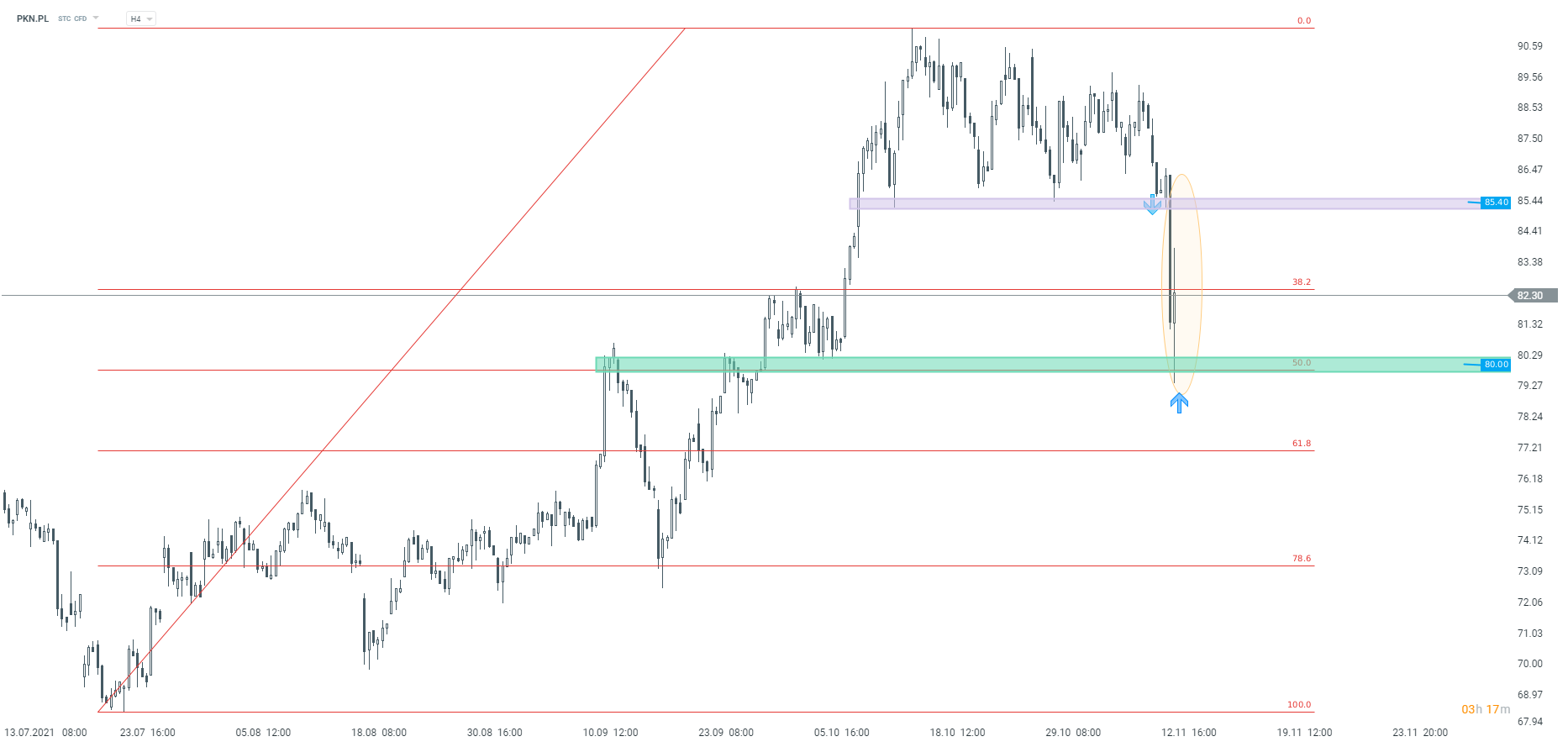 W pewnej chwili przecena na akcjach Orlenu (PKN.PL) sięgała nawet 8%. Źródło: xStation5