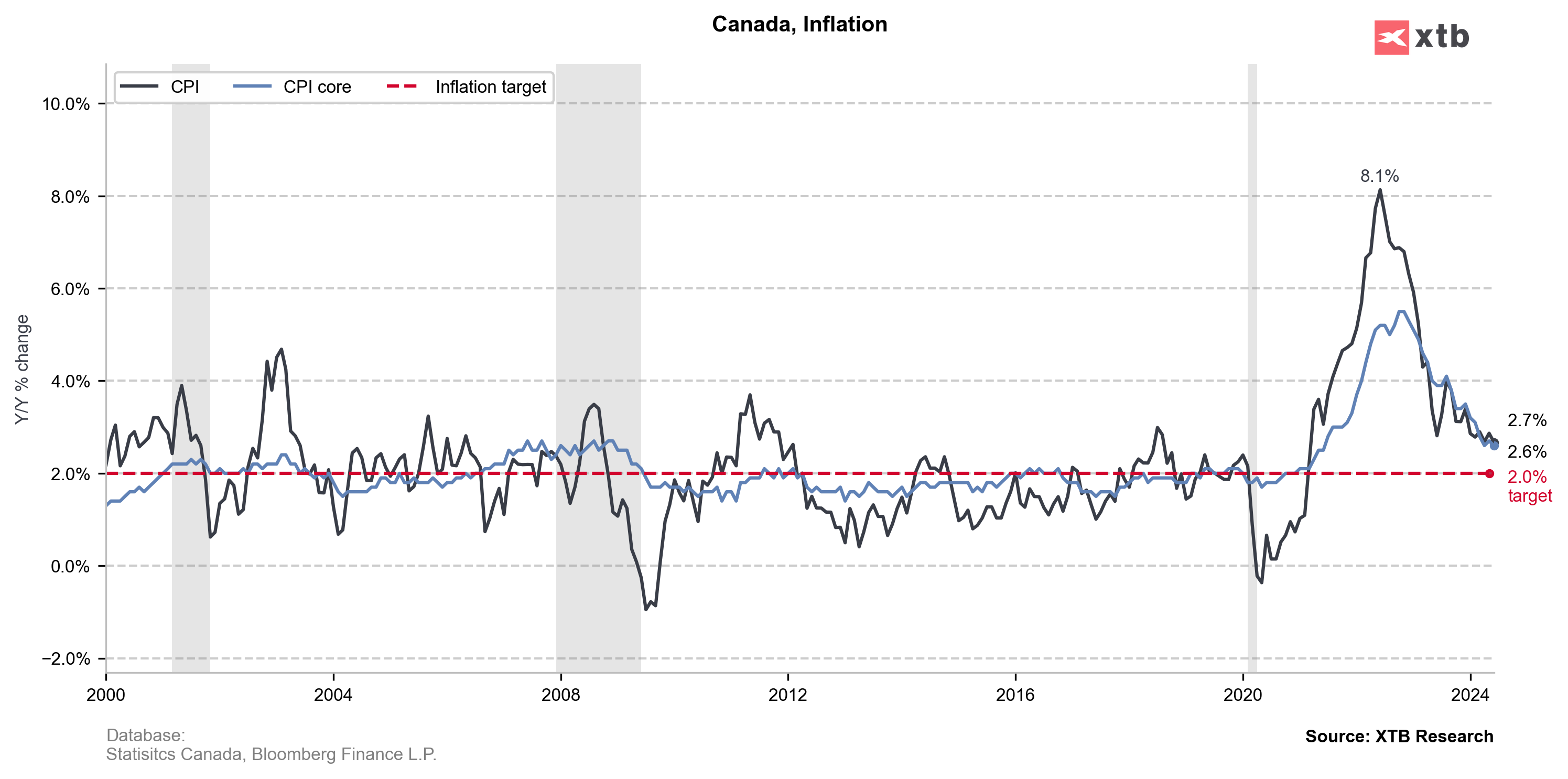 14:30, Kanada - Dane o inflacji za czerwiec: