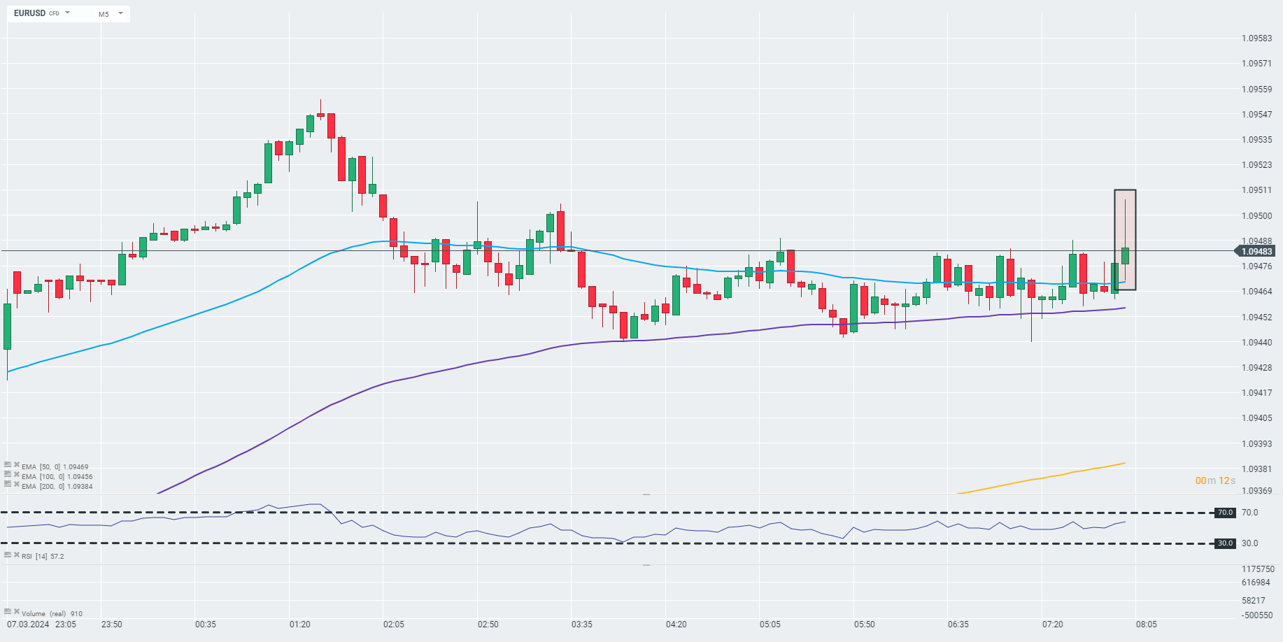 Para EURUSD odnotowała nieznaczne wzrosty na krótko po odczycie danych makro. Ruch ten obecnie jest jednak korygowany.